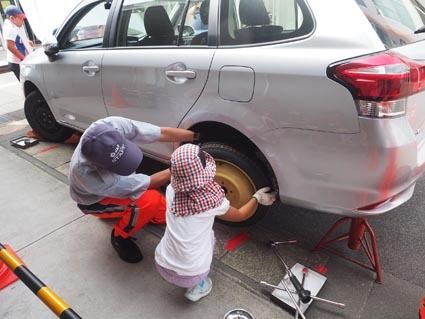 タイヤ交換出来ちゃった、日本自動車連盟静岡支部が「子ども向け仕事体験講座」