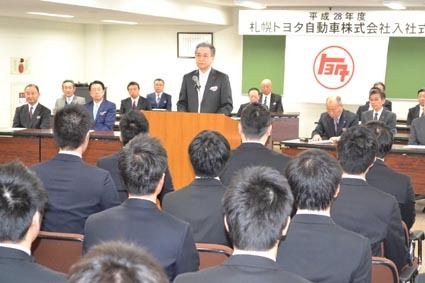 2016年度の幕が上がり、道内新車ディーラー各社は1日、入社式を実施した。今年も多くの新入社員が自動車業界に仲間入りした。 ◆札幌トヨタ「未来を担う存在になるよう活躍して」 札幌トヨタ(中島好美社長)は1日、「平成28年入社式」を本社会議...