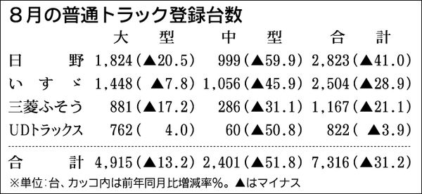 8月の普通トラック販売