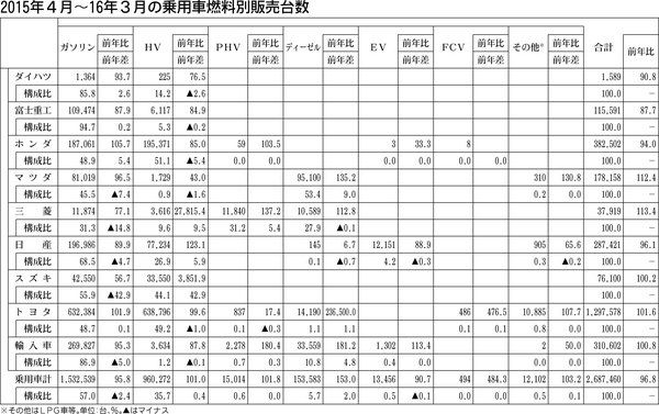 登録乗用車販売台数に占める環境対応車の勢力図に、にわかに変化が表れ始めた。2015年度の燃料別販売台数は、クリーンディーゼル車が約5万台増とハイブリッド車(HV)の伸びを大きく上回った。エコカーの代名詞として拡大基調を支えてきたHVは99...