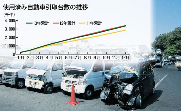 2013年の使用済み自動車引取台数、中古車輸出伸び2年ぶりマイナス