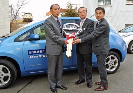 日産自動車が箱根町にリーフ、電力供給装置と共に寄贈