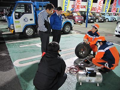 【水戸】日本自動車連盟(JAF)茨城支部(嶋津孝一郎支部長)は11月30日、土浦市のスズキ自販関東土浦営業所で「JAF入会説明会・ロードサービス実演会」を実施した。 最近の車はエコカーの導入などにより、スペアタイヤを積んでいない車が増えて...