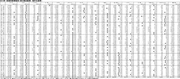 【2013年 地域別新車販売(含む軽自動車、海外生産車)】