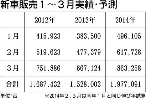 2014年1月の新車販売台数(登録車、軽自動車の合計)は前年同月比29・4%増の49万6105台となり5カ月連続で増加した。自動車メーカー各社の活発な新型車投入が効果を表すとともに、消費増税前の“駆け込み需要”の本格化によって大幅に伸びた...