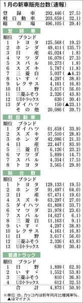 登録車販売1月、過去6番目の高水準 27.5%増