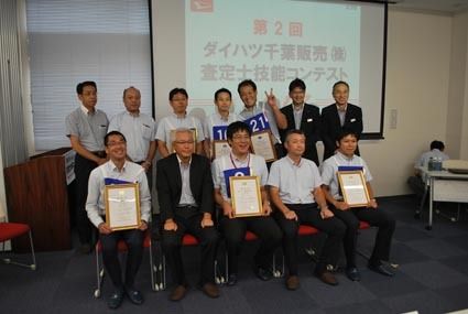 ◆最優秀は樋口さん(U―CAR富里)、森澤さん(鎌ヶ谷店) 【千葉】ダイハツ千葉(矢部正信社長)はこのほど、千葉市中央区のサービス研修センターで「査定士技能コンテスト」を開催した。コンテストは“学科”と“実技”の2競技で構成。出場した45...