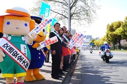 ◆愛知県 愛知県と愛知県交通安全推進協議会(会長=大村秀章愛知県知事)は6日、名古屋市中区の県庁で「春の全国交通安全運動出発式」を開催するとともに、式典参加者たちが道路を通過する車のドライバーや通行人に向けた交通安全啓発活動「啓発キャンペ...
