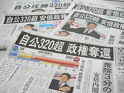 16日投票、即日開票された衆院選は自民・公明党が計325議席を獲得し、約3年3カ月ぶりの政権交代を果たした。選挙前に230議席だった民主党は57議席に終わり、野田佳彦首相は同日夜に民主党代表を辞任。自民党の安倍晋三総裁は車体課税の抜本改革...