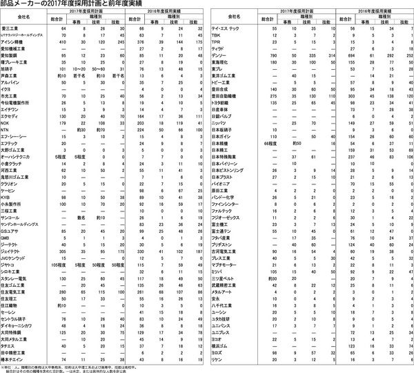 〈部品メーカー60社 17年度新卒採用計画〉7割が今春より増加