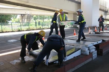 首都高速道路(宮田年耕社長)はこのほど、震度6強の首都直下地震で高速道路の高架橋上に車が滞留した状況を想定し、緊急交通路確保のための復旧作業訓練を公開した。訓練では、高架橋の支承が脱落して橋の継ぎ目に段差や開きが発生し、複数の車両が道路上...