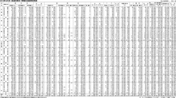 【2013年9月末 都道府県別・車種別自動車保有台数】