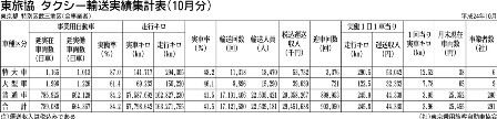 東京乗用旅客自動車協会の11月タクシー輸送実績速報