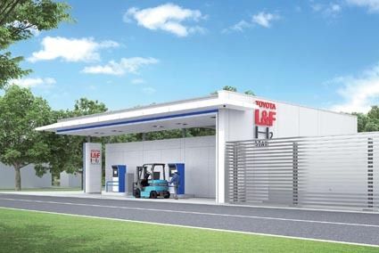 豊田自動織機は、太陽光で発電した電力で水素を製造する再生可能エネルギー水素充填所を高浜工場に設置すると発表した=完成イメージ。東芝エネルギーシステムズが提案していたもので、同工場内で稼働する燃料電池フォークリフト向けに水素を製造、圧縮、充...