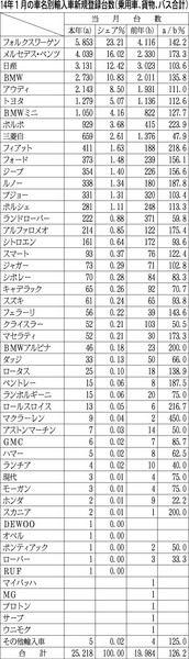 【14年1月の車名別輸入車新規登録台数(乗用車、貨物、バス合計)】