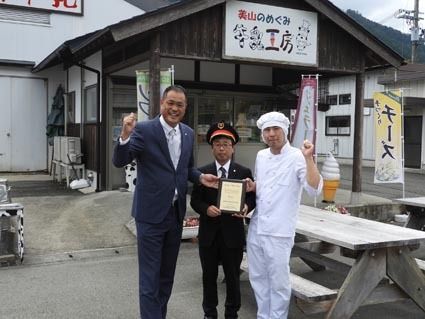 【京都】日本自動車連盟(JAF)京都支部(森川莫臣支部長)は、「道の駅ソフトクリーム総選挙2018」で上位にランクされた道の駅に表彰楯を贈呈した。美山牛乳ソフトクリーム(道の駅美山ふれあい広場)と丹波黒豆ソフトクリーム(道の駅京丹波味夢の...