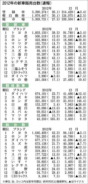 2012年新車販売、4年ぶり500万台回復 軽比率最高に