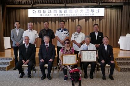 【那覇】日本自動車販売協会連合会(自販連)沖縄県支部はこのほど、那覇市内のホテルで公益信託自販連盲導犬育成基金による「盲導犬貸与式」を行った。北谷町在住の桐原好枝さんにレトリーバー(オス)のルート号を貸与した。同基金の盲導犬貸与は、現在ま...