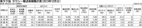 東京ハイヤー・タクシー協会は1月のタクシー輸送実績速報(特別区武三地区、調査対象事業者30者、2065両)をまとめた。輸送人員は189万9265人で前年同月比1・4%減、運送収入(税込)は22億6320万円で同0・7%増、実車キロ数は51...