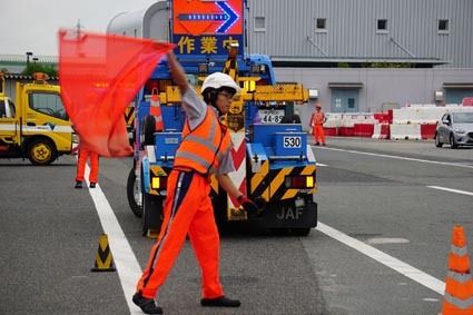 日本自動車連盟(JAF)関西本部(堀内俊樹本部長)は10、11日、和泉市の特設会場で「後方警戒訓練」を開催した。同本部管内に所属するロードサービス(RS)隊員とJAFが契約する指定工場から選抜された24人が参加した。 後続車に注意を促すた...