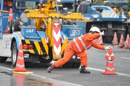 日本自動車連盟(JAF)関西本部(堀内俊樹本部長)はこのほど、大阪府和泉市で「後方警戒訓練」を実施した。関西本部管内から選抜されたロードサービス(RS)隊員とJAFが契約する指定工場及び後方警戒委託業者ら38人が参加した。 高速道路や自動...