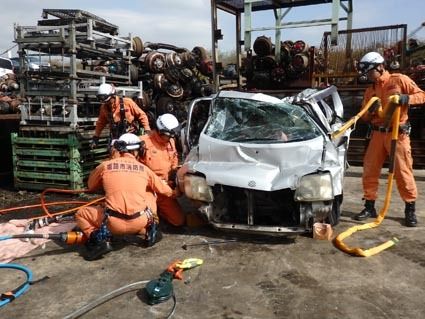 【神戸】自動車リサイクル大手の新井商会(新井栄社長、姫路市)は26、27日、本社で姫路市消防局レスキュー隊と消防救助隊の災害救助訓練に協力した。隊員計60人が参加した訓練で、使用済み自動車や訓練スペース・機材を提供したほか、ハイブリッド車...