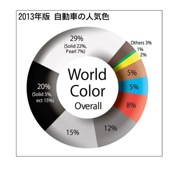 米の自動車用塗料メーカー、アクサルタコーティングシステムズは2013年版の自動車人気色調査結果を発表した。1953年以降、世界各地域の人気色を調査しているものだが、全世界ではホワイトが前年より6%もシェアを伸ばした。また無彩色が76%を占...