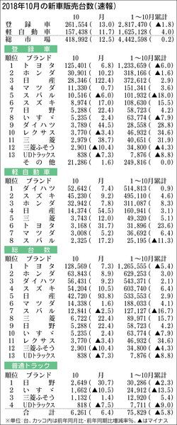 【2018年10月の新車販売台数(速報)】