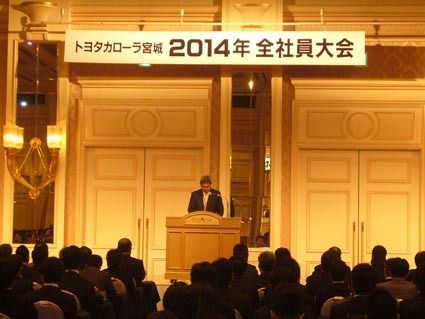 【仙台】トヨタカローラ宮城(吉※岡博文社長)はこのほど、仙台ロイヤルパークホテルで「2014年全社員大会」を開催した。サービスを軸とした総合営業活動をもとに、14年の営業目標は新車販売(除軽)7千台、U―Car小売り2100台、サービス売...