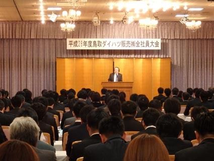 【鳥取】鳥取ダイハツ(村川雅則社長)は4月26日、米子市内のホテルで全社員大会を開催し、今年度の経営方針を発表するとともに優秀社員を表彰した。 村川社長は「お客様を守り増やす活動を徹底していく。新型ブーンなど今年は登録車市場で戦う商品があ...