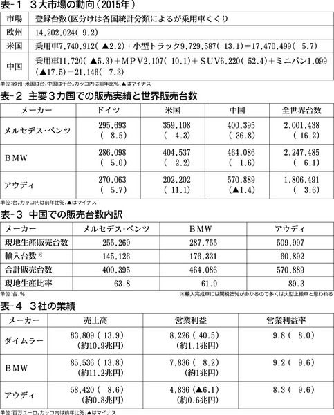 〈企画解説〉ドイツプレミアム3社の2015年決算