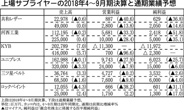 【上場サプライヤーの2018年4~9月期決算と通期業績予想】