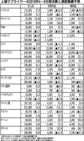 【上場サプライヤーの2018年4~9月期決算と通期業績予想】