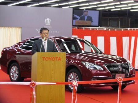 トヨタ自動車は17日、元町工場(愛知県豊田市)で新型「クラウン」のラインオフ式を実施し、報道陣に公開した。トヨタ本体の工場で行うラインオフ式を外部に公開するのは、2009年に生産開始した3代目「プリウス」以来、約4年ぶり。新型クラウンは1...