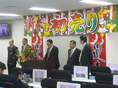 【広島】広島県中古自動車販売商工組合(JU広島、二村義春理事長)は10日、北広島町の常設会場で初競りとなる「新春記念オークション」を開催した。 オークションに先立ち、二村理事長が「12年度のオークション出品台数は前年度比8・8%増となり、...