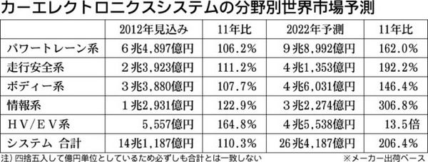 ◆富士キメラ調査、情報系中心に軒並み伸長 富士キメラ総研(田中一志社長、東京都中央区)は、自動車用電装システム・デバイスの2022年の世界市場を調査し「車載電装デバイス&コンポーネンツ総調査2013」としてまとめた。これによるとシステムの...
