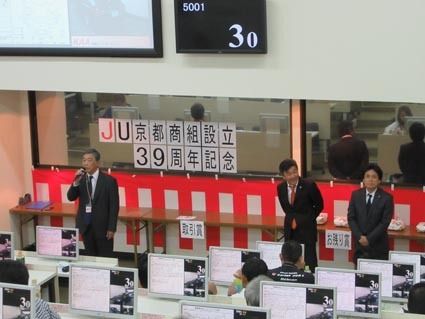 【京都】KAA京都オートオークション(KAA京都、大峰高社長)は7日、伏見区の常設会場で京都府中古自動車販売商工組合(JU京都、東將之理事長)と「JU京都協賛商組設立39周年記念オークション」を共催した。KAAとJU京都は2013年に流通...