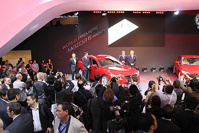 世界で「マツダ6」として展開する「アテンザ」。マツダは2013年度、24万台(旧型含む)のグローバル販売を目標に掲げる。山内孝社長は「アテンザが属するCDセグメントは世界で500万台近い市場がある。この中で5%のシェアを取る」と意気込む。...