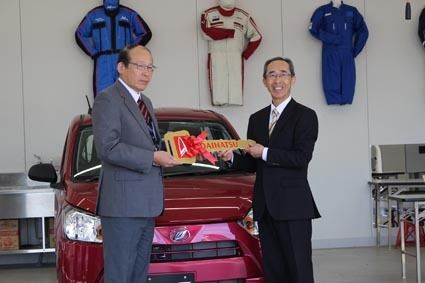 【静岡】静岡ダイハツ(井上憲明社長)は10月31日、東海工科自動車大学校(水野貴校長)に教材として「ミラ・イース」と故障診断機「DSIII」、スマートアシストの調整ツール一式を寄贈した。浜松市中区の同校で寄贈式を行い、井上社長がマスコット...