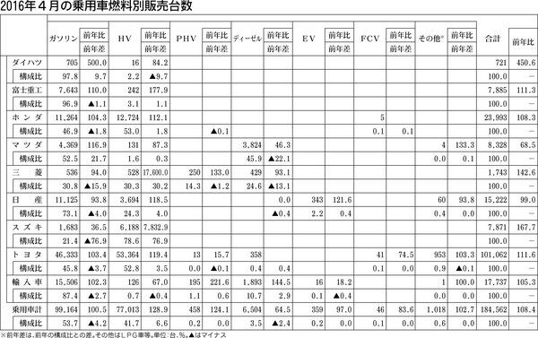 日本自動車販売協会連合会(自販連)がまとめた4月の乗用車燃料別販売台数は、ハイブリッド車(HV)が5カ月連続でプラスとなった。トヨタ自動車が昨年末に発売した新型「プリウス」の効果が続き、前年同月比28・9%増の7万7013台となった。トヨ...