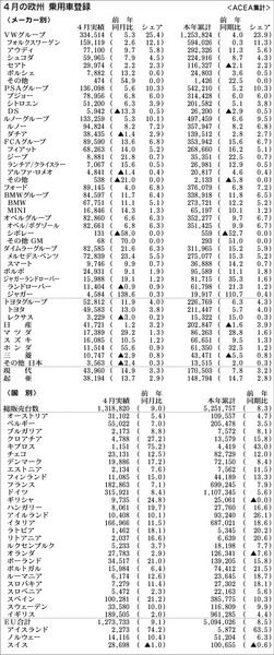 【4月の欧州 乗用車登録】