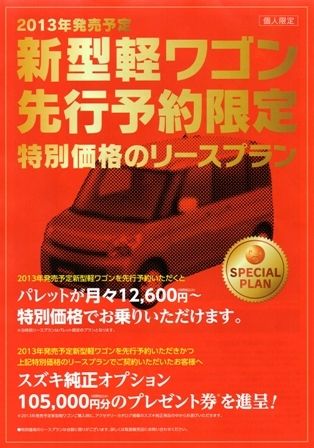 全国のスズキ車正規ディーラーが、軽自動車「パレット」を特別価格でリースするプランの展開を始めた。個人向け限定のプログラムで、月々1万2600円からの価格で新車に乗ることができる。基本的には、近く発売を予定するパレット後継車の新型軽ワゴンの...