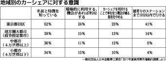 カーシェアリング車両がある「ステーション」の大半は大都市圏に集中する。「1人1台」が根付く地方では「個人利用を想定したサービスは難しい」(三井不動産リアルティの黒川伸吾執行役員シェアリング事業本部副部長兼シェアビジネス営業部長)からだ。た...