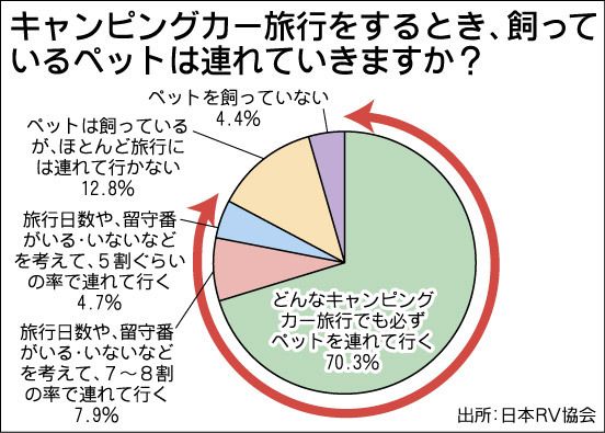 キャンピングカーとペットの相性は良好―。日本RV協会(JRVA、福島雅邦会長)が行った調査によると、ペットを飼育しているキャンピングカーユーザーのうち「どんな旅行でも必ずペットを連れていく」という人が7割超にのぼったことがわかった。13年...