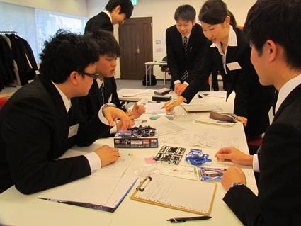 「ミニ四駆」を使って学生に部品メーカーの仕事のプロセスを説明した。...