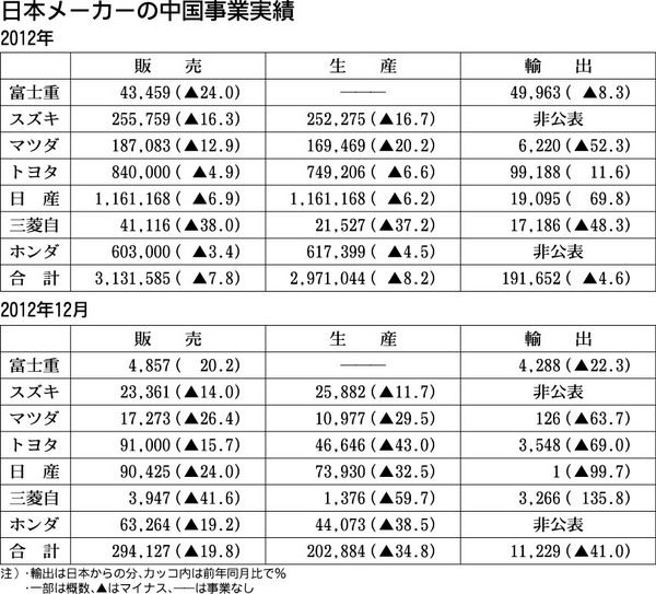 日本メーカー7社による2012年の中国事業実績がまとまった。7社合計の販売台数は313万1585台となり、前年比で7・8%減少した。9月に発生した尖閣諸島問題を発端とする日本製品の不買運動の影響により、年後半に大きく落ち込んだ。これを受け...