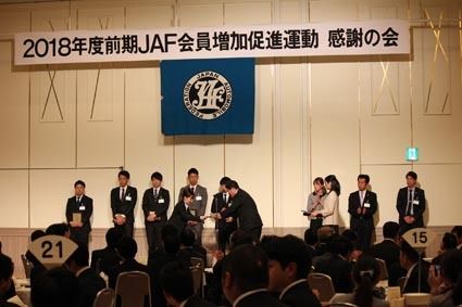 【大分】日本自動車連盟(JAF)大分支部(片岡潔支部長)は11月22日、大分市内のホテルで「2018年度前期JAF会員増加促進運動 感謝の会」を開催した。18年4~9月の会員増加促進運動で優秀な成績を残した販社と個人に感謝状を贈呈。販売会...