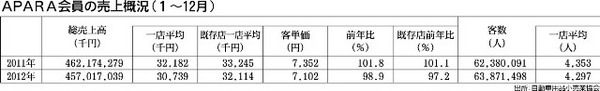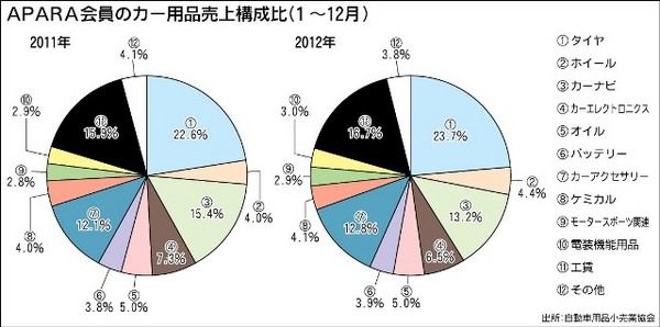 自動車用品小売業協会(APARA、堀江康生会長)の会員カー用品販売店における2012年の売上概況がまとまった。12年の総売上高は、前年比1・1%減の4570億1703万9千円と、2年ぶりに減少に転じた。これに伴い店舗当たり平均売り上げや客...