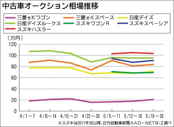 ■ホンダ・ダイハツの優位性高まる 三菱自動車の燃費不正発覚以降、該当する軽4車種の中古車オークション(AA)相場は大幅に下落した。一方のスズキ車は燃費データ測定不正を公表した18日以降も主力車種の相場は変わっておらず、2社の明暗は分かれた...