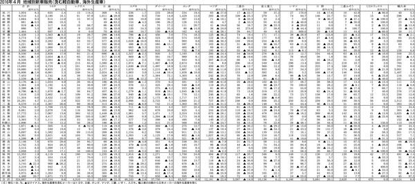 【2016年4月 地域別新車販売(含む軽自動車、海外生産車)】